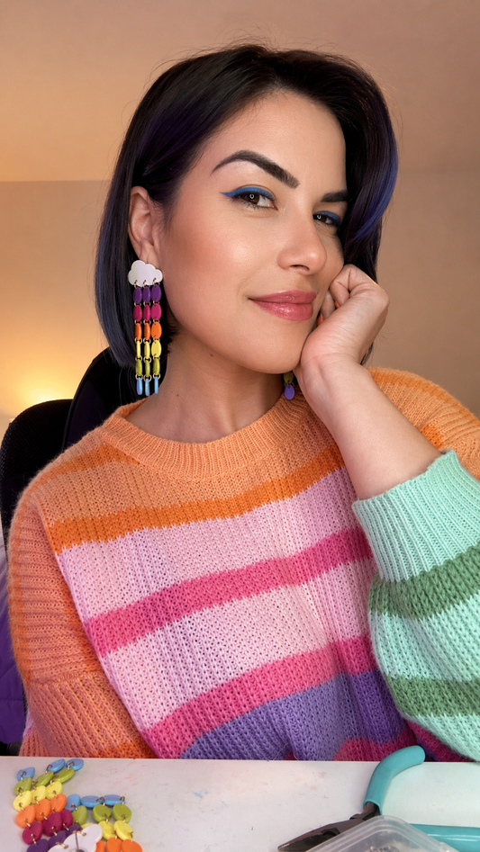 Here she is, hugging the fabric that brought Duquesas to fame during its first viral moment on social media. That design catapulted her into the spotlight and proved that her story, her style, and her vision had a place in the hearts of thousands. Since then, Grecia hasn’t just created jewelry — she’s created memories that speak to a generation of Boricua women.