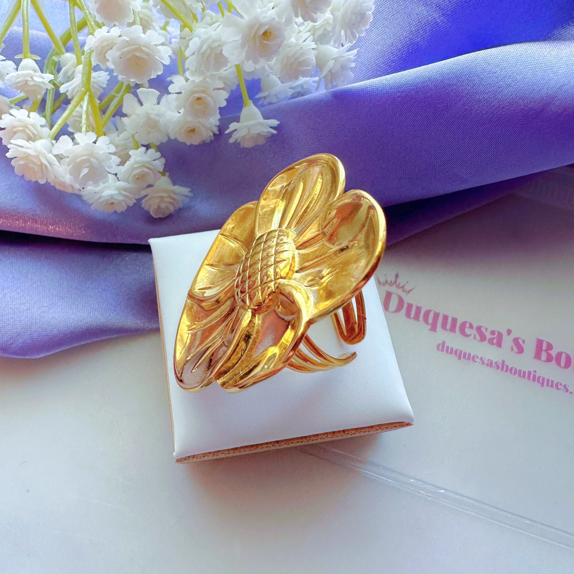 This ring is made from stainless steel and 18k gold plated with adjustable opening for a universal fit.