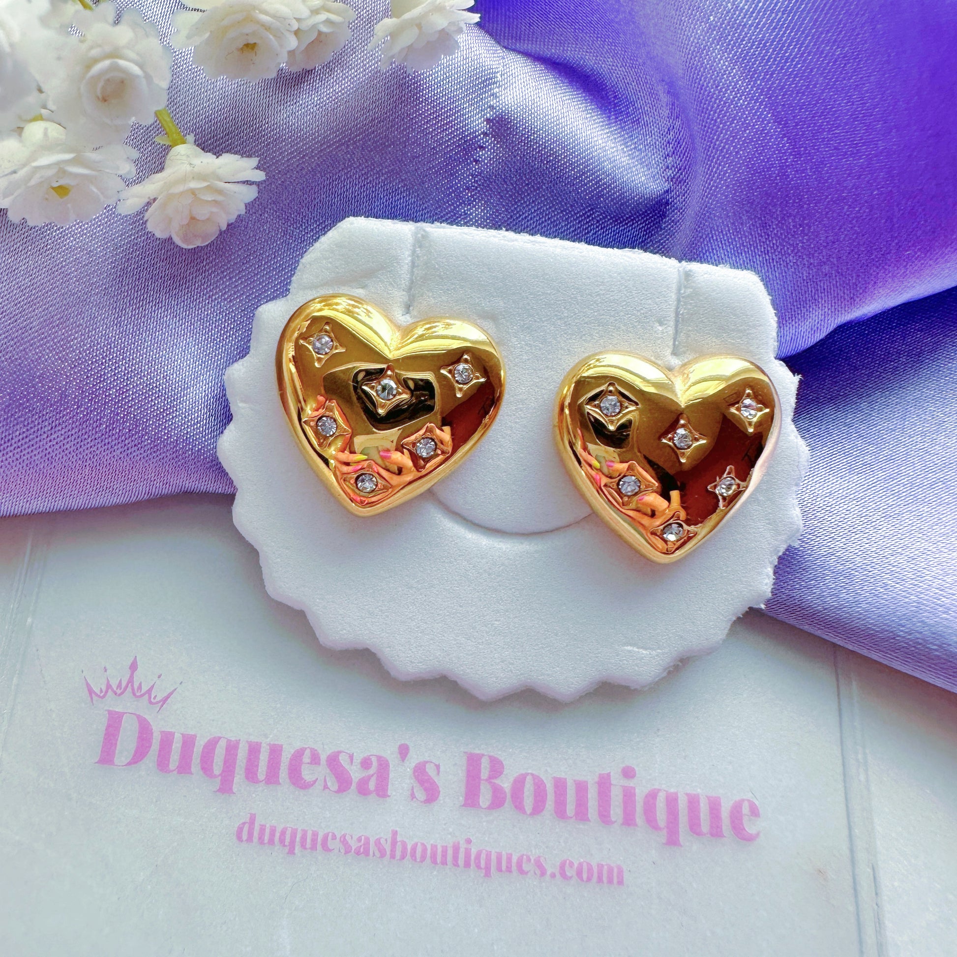 These simple but classy studs are made from stainless steel and 18K gold plating and decorated with a clear zircon.