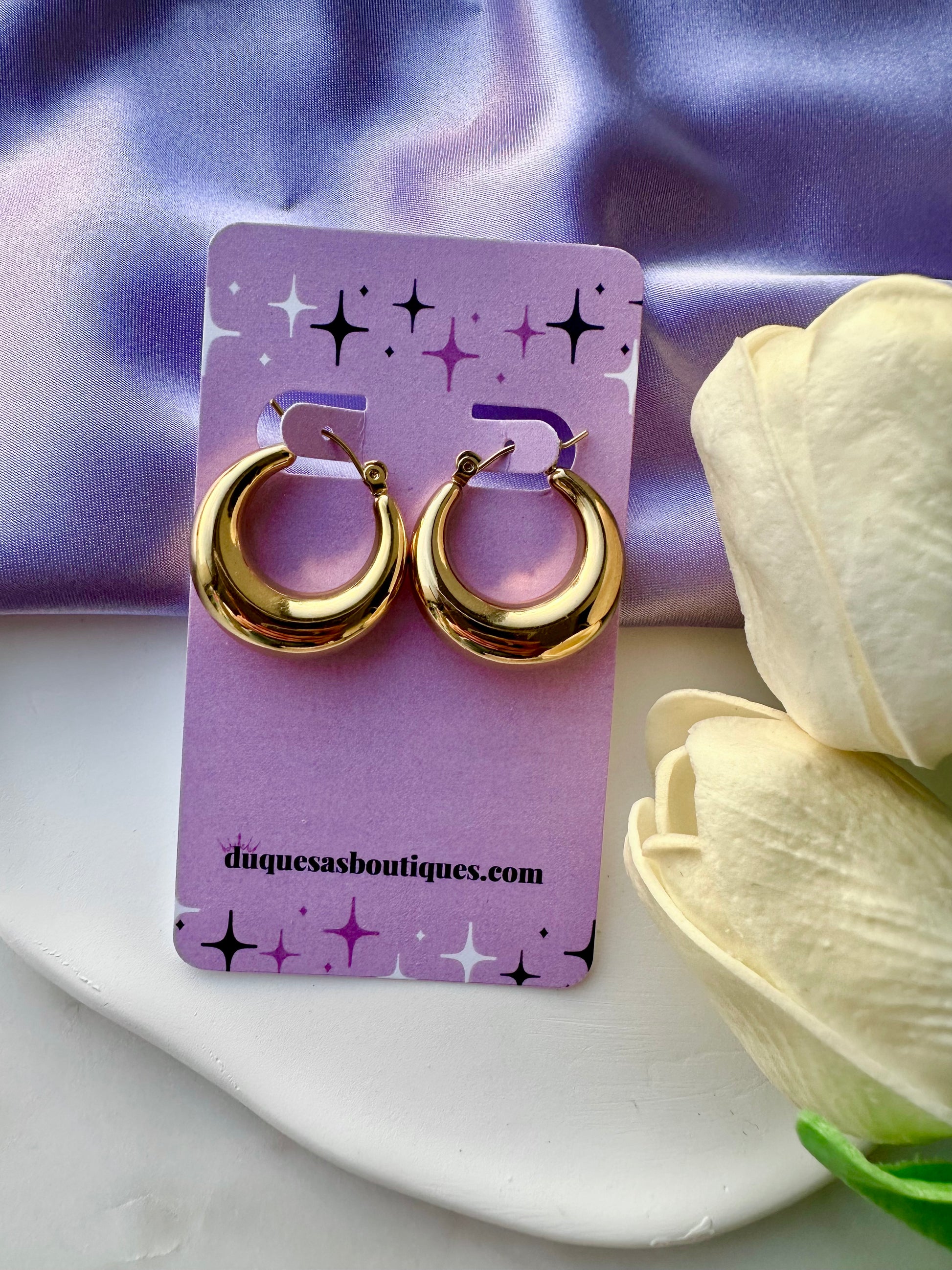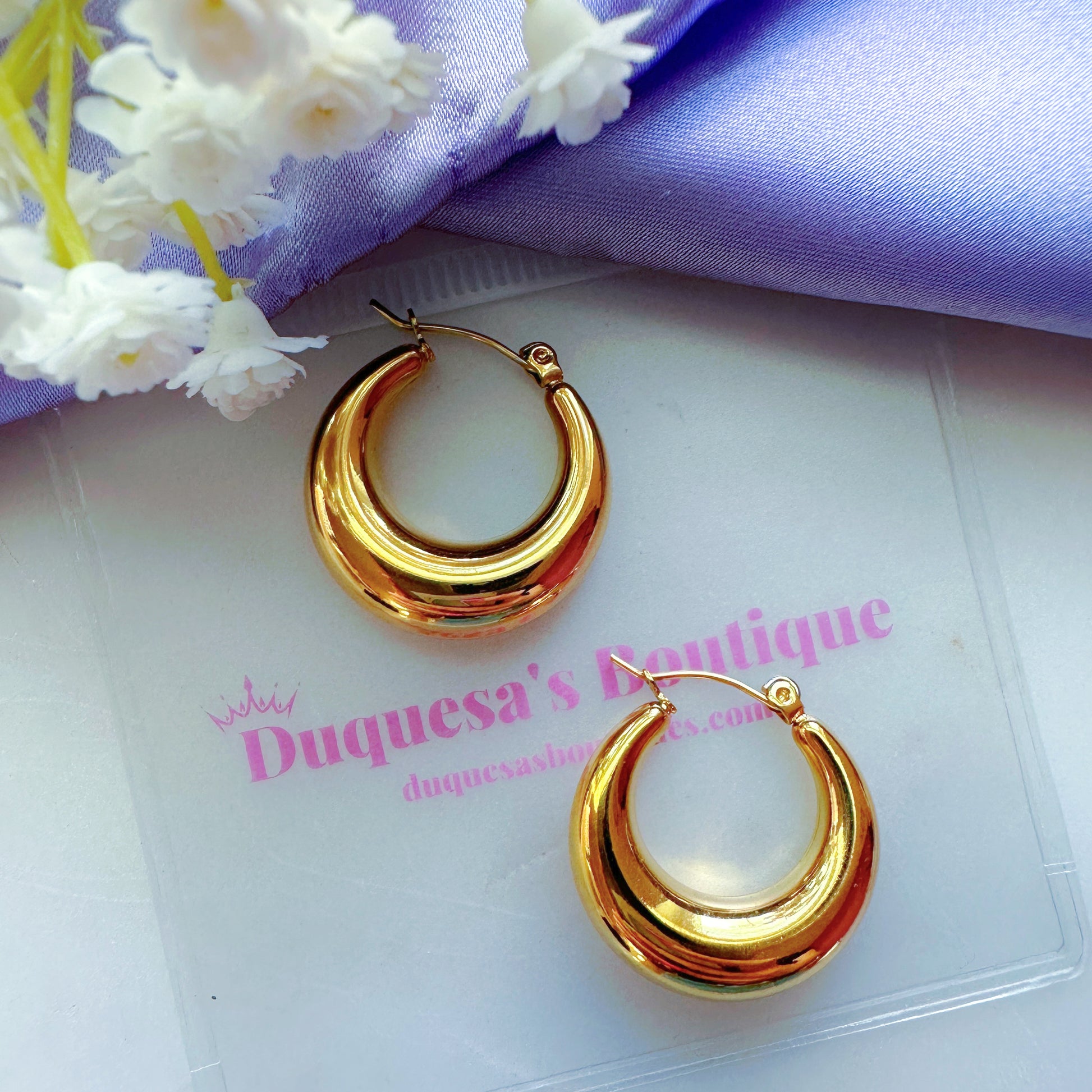 This gorgeous hoop earrings are made from stainless steel and 18k gold plated, they will make you feel and look like a real duchess.