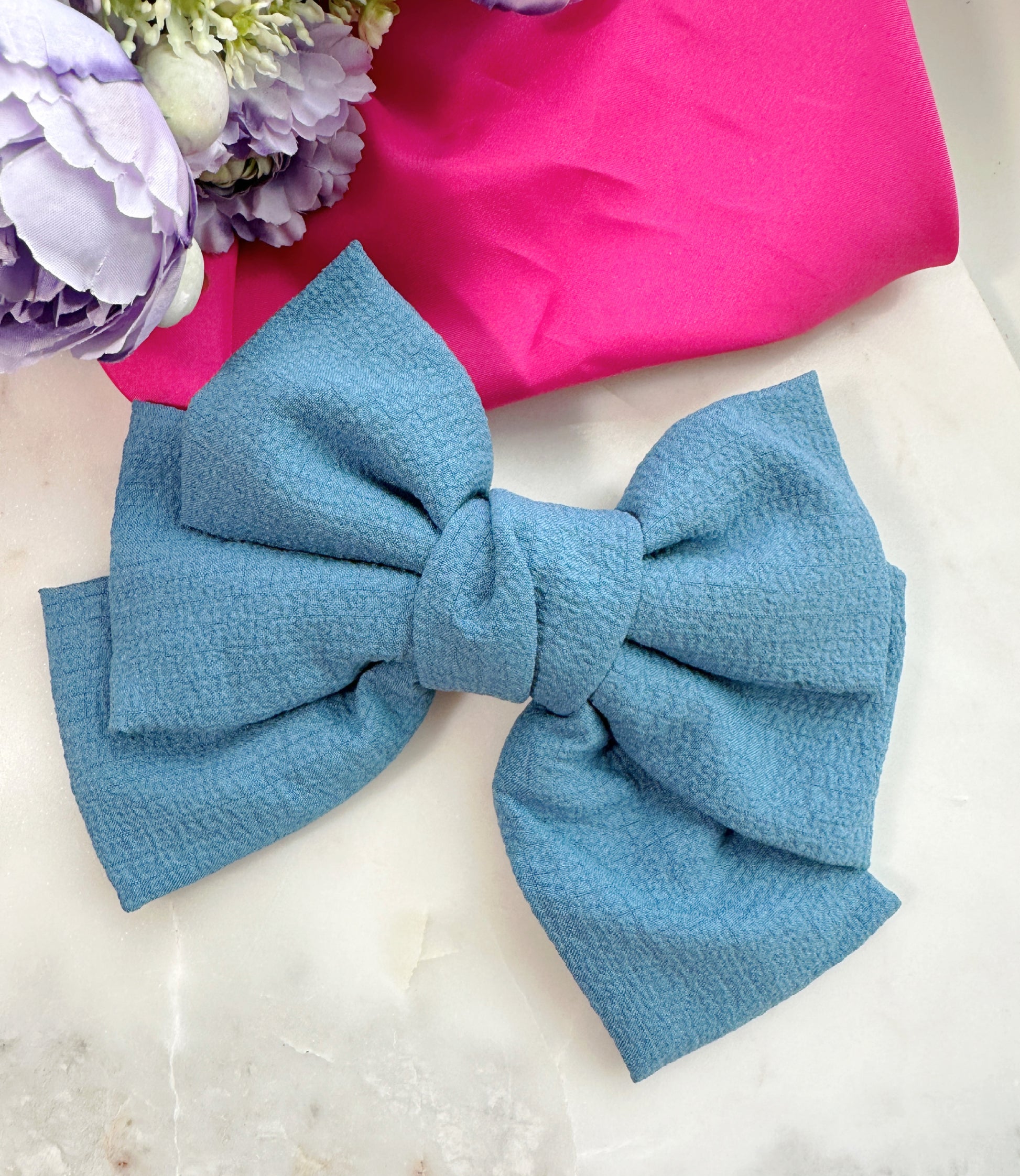 Simple pastel tone fabric handmade double bow knot hair clip.
