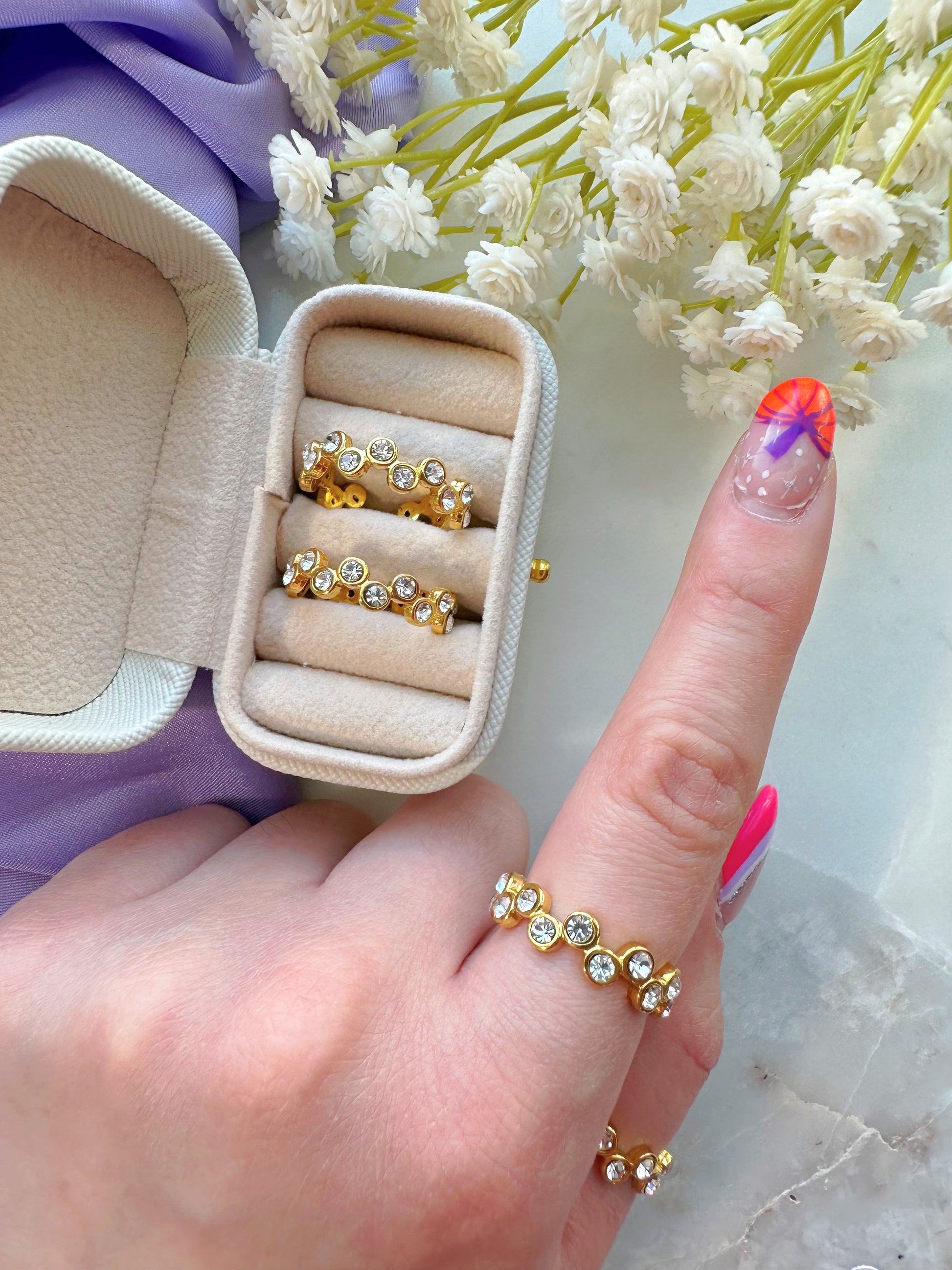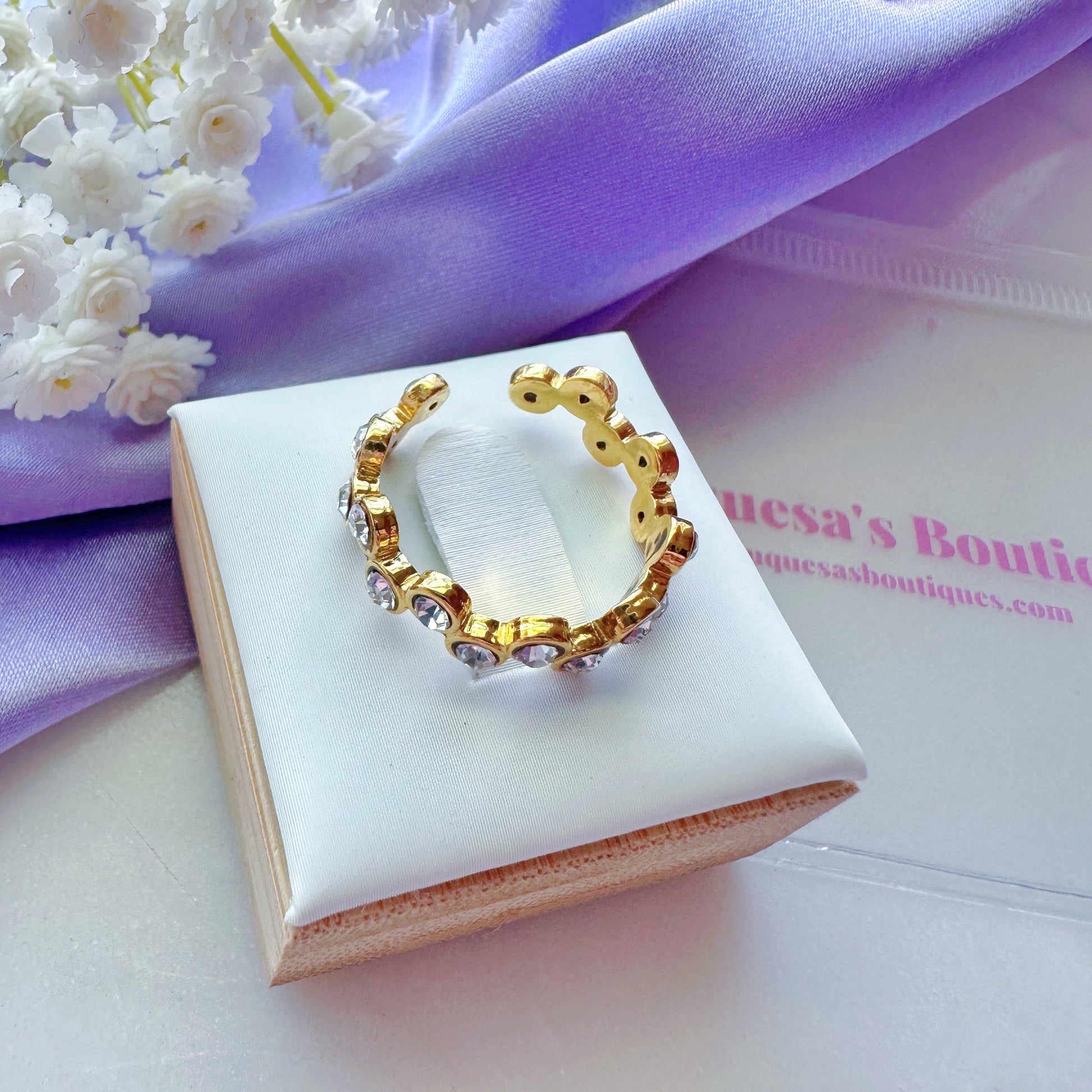 This ring is made from stainless steel and 18k gold plated with adjustable opening for a universal fit.