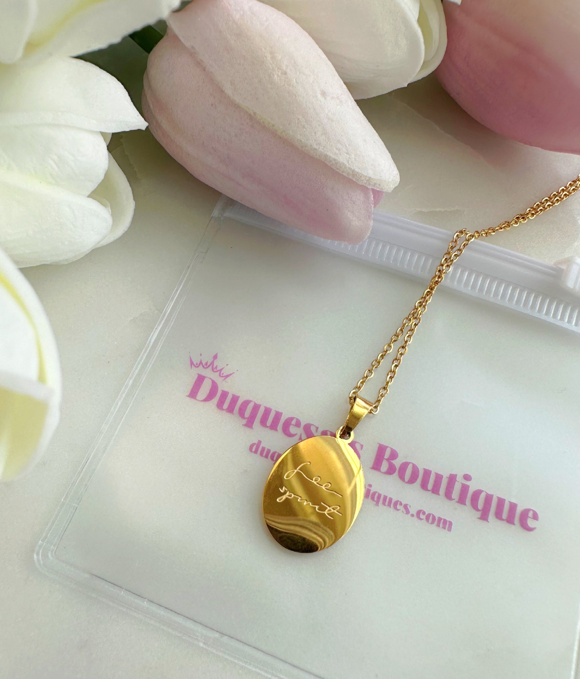 This beautiful necklace is made from Stainless Steel and 18k gold plaited link adjustable chain.