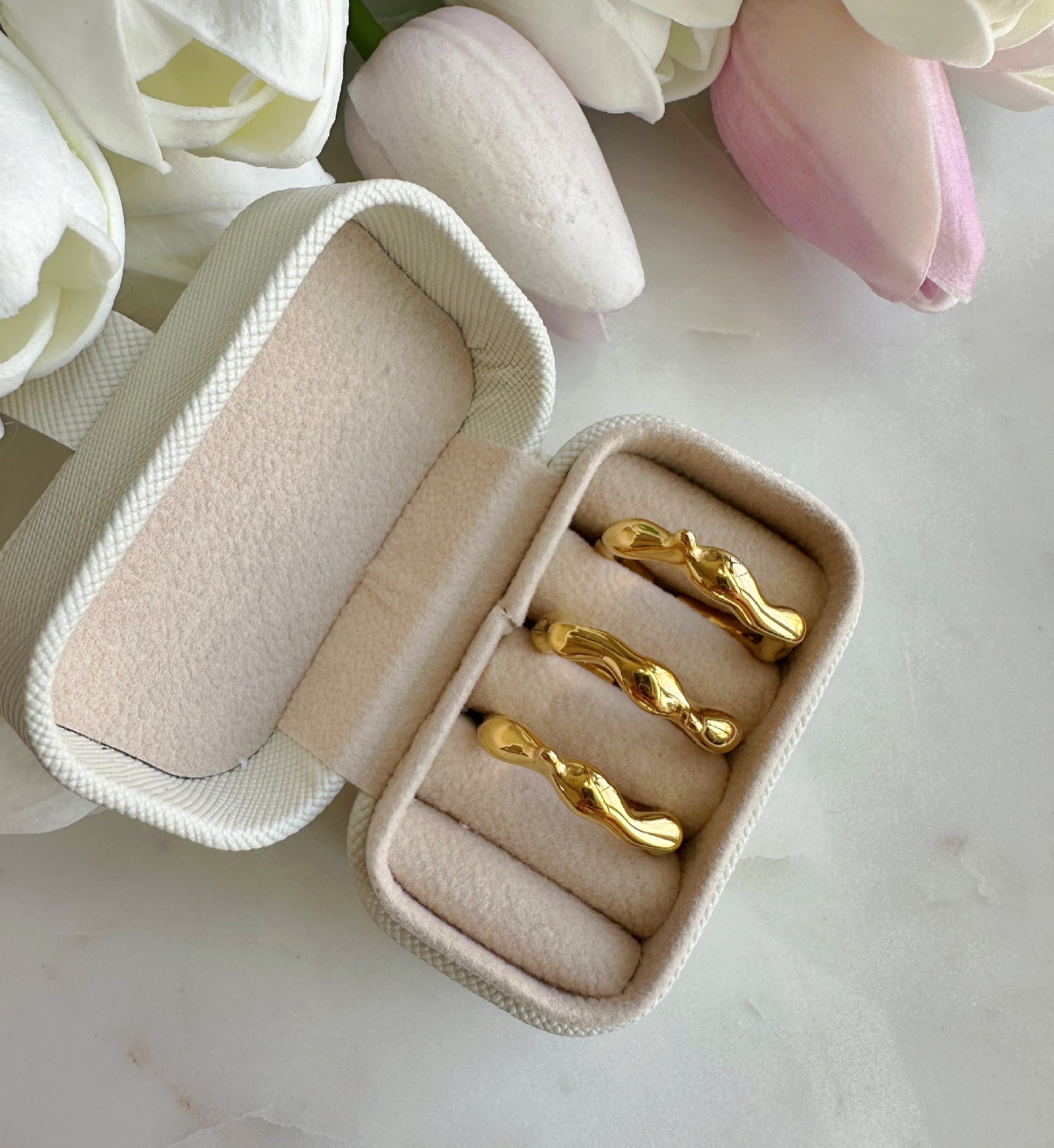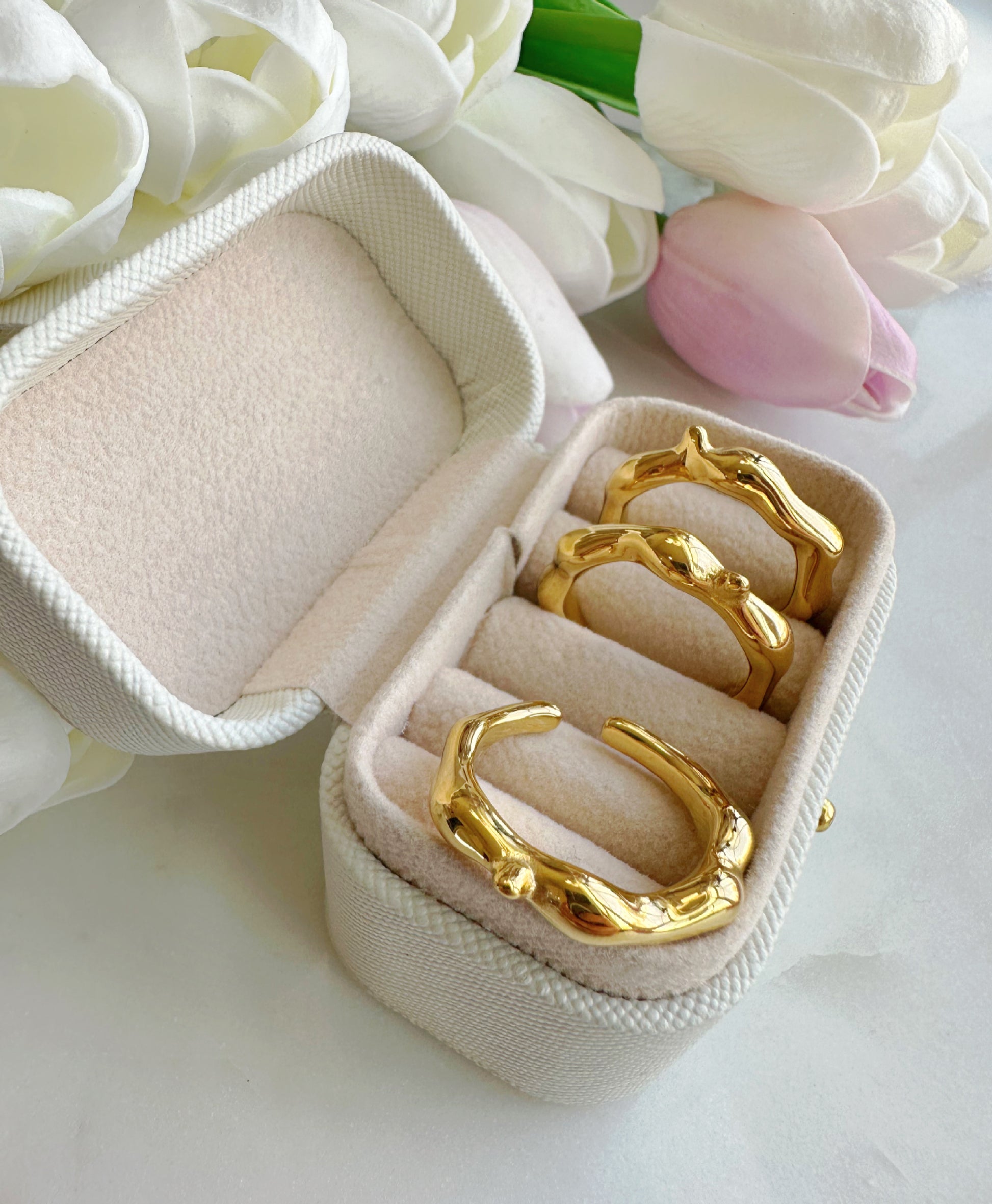 This ring is made from stainless steel and 18k gold plated with adjustable opening for a universal fit.