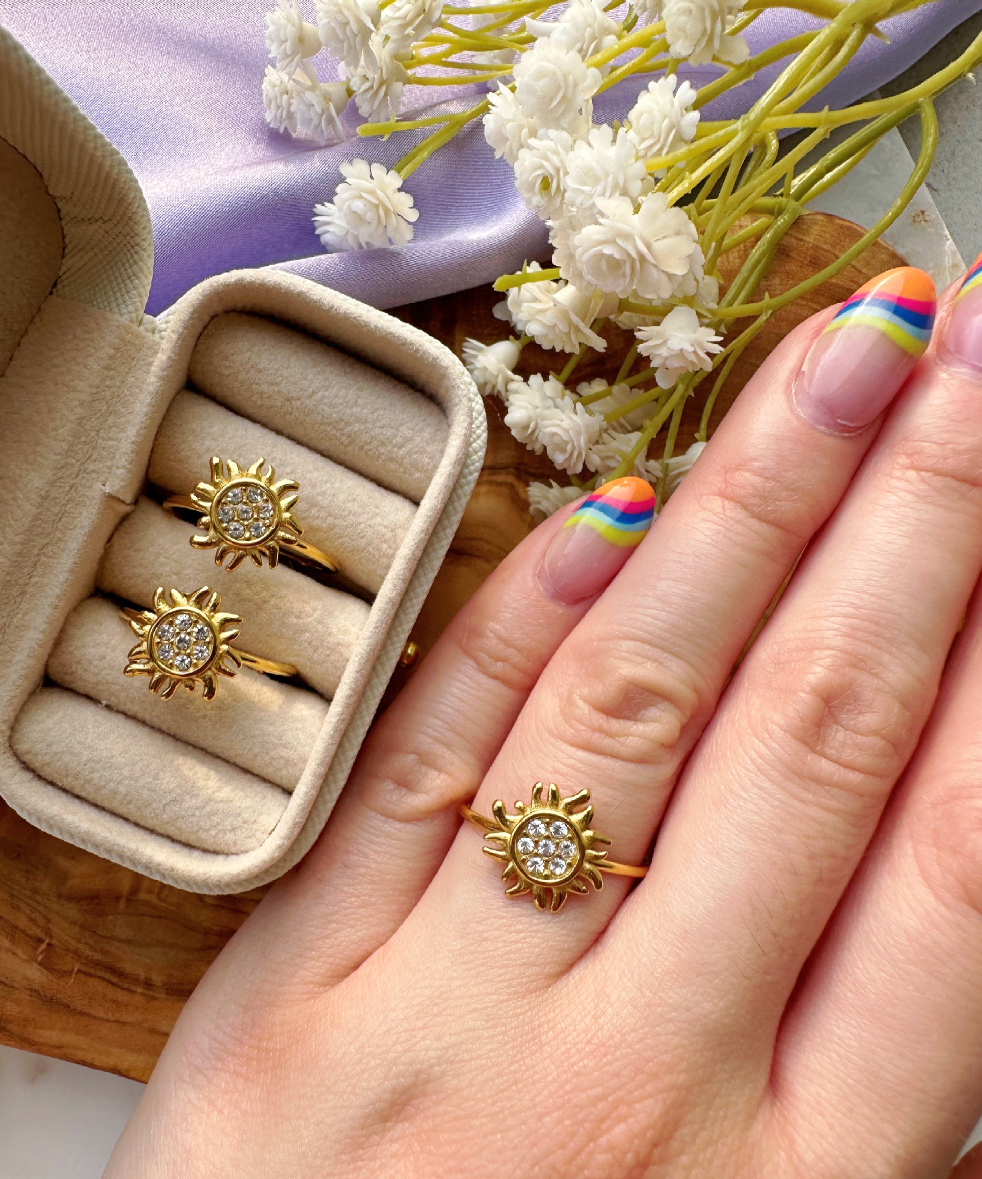 This ring is made from stainless steel and 18k gold plated with adjustable opening for a universal fit.