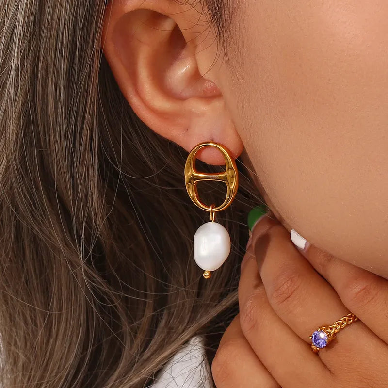 This Gorgeous sweet water pearls earrings are made from stainless steel and 18k gold plated, they will make you feel and look like a real duchess.
