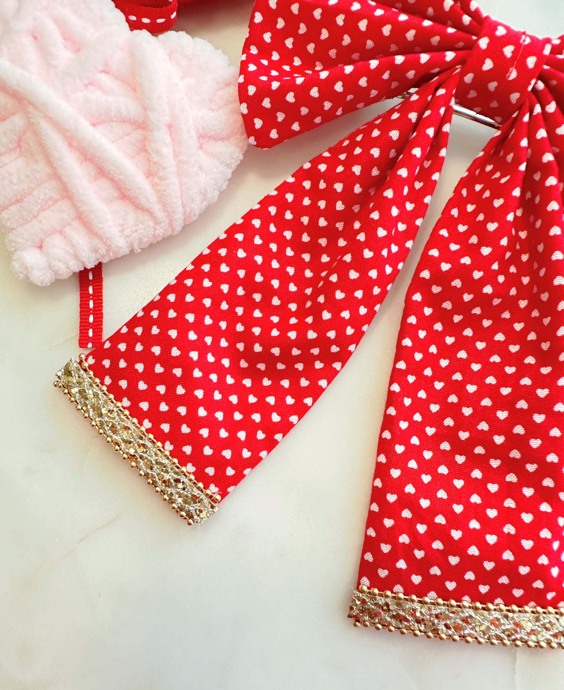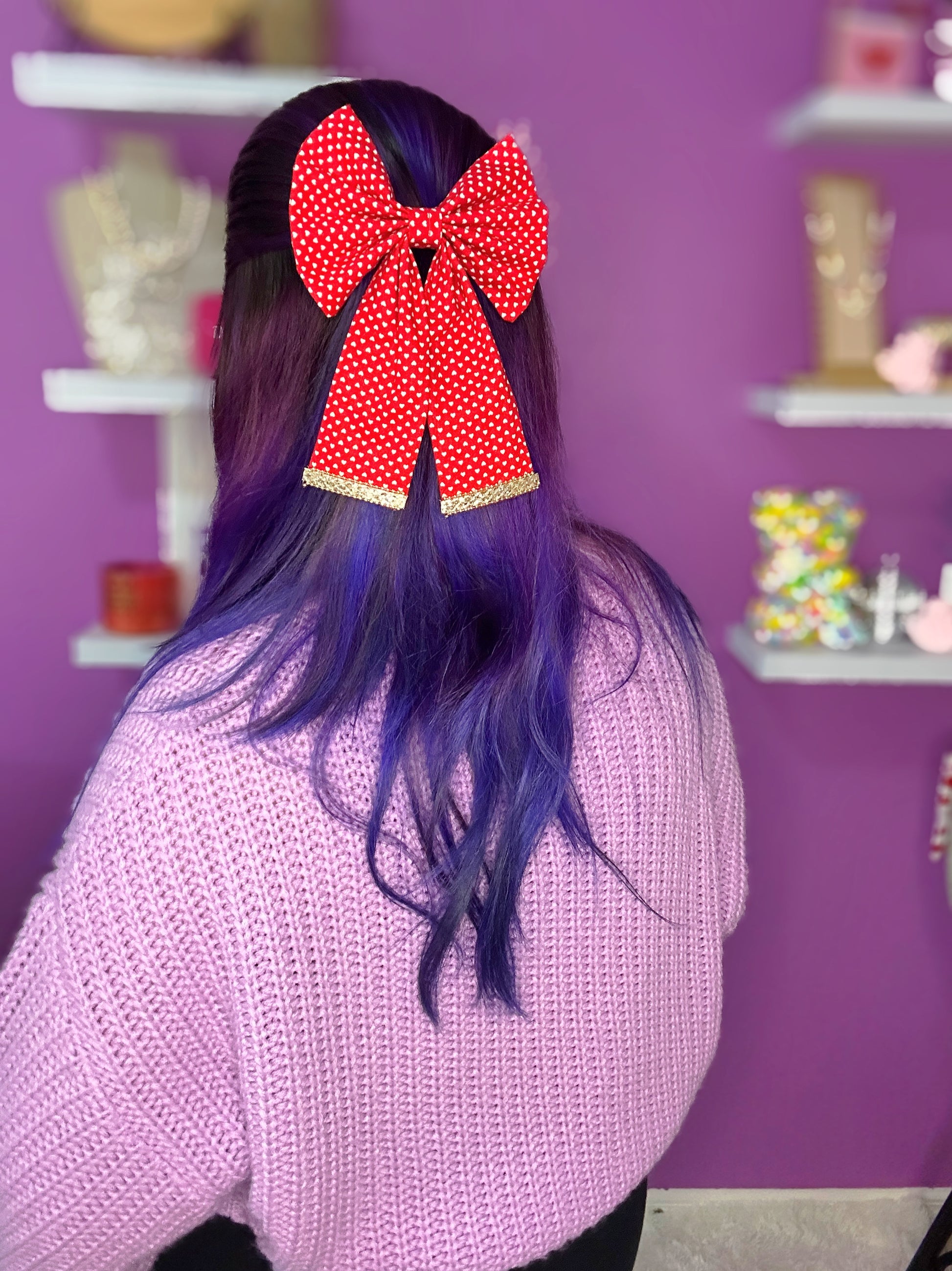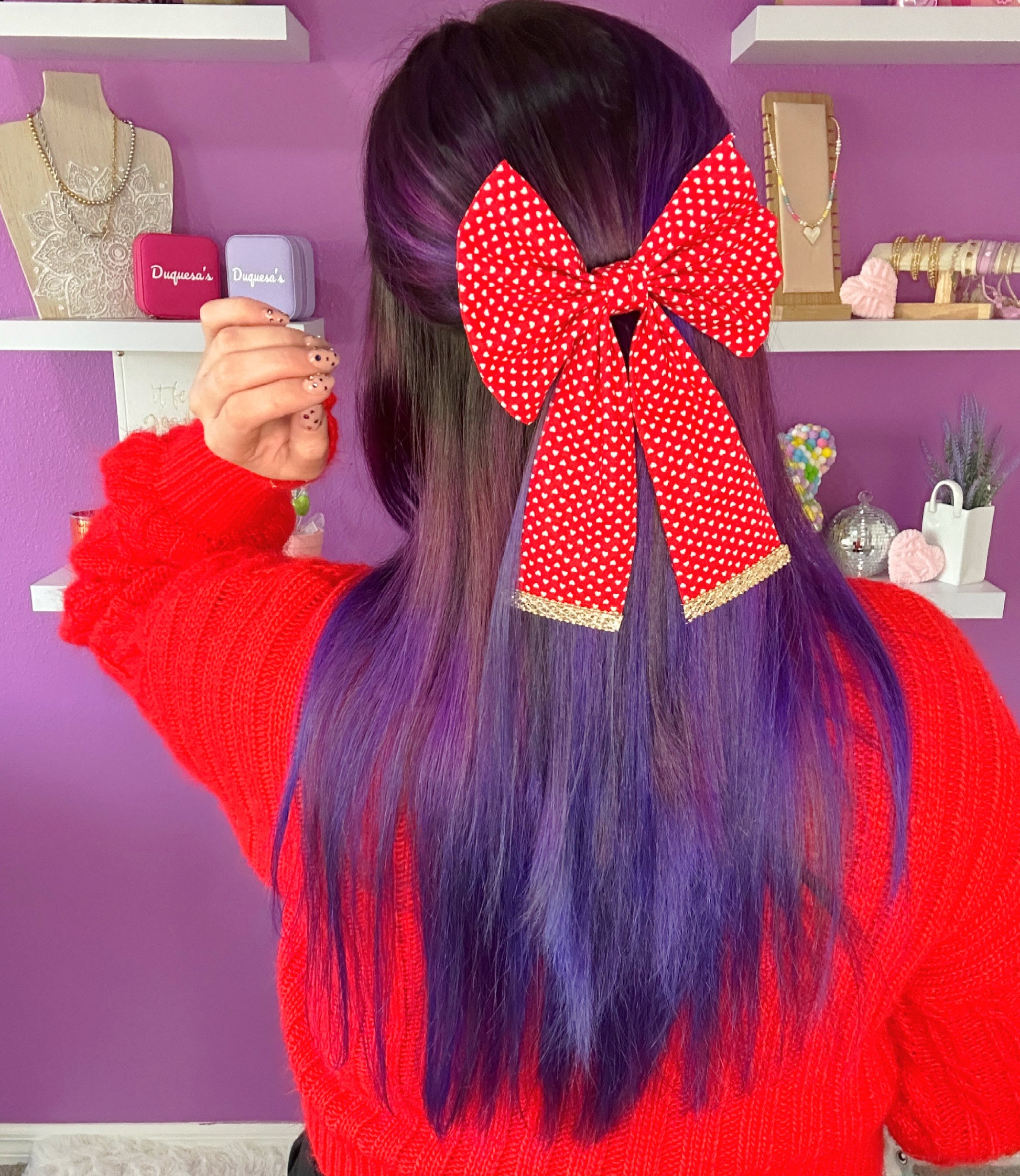 The bow is 5" wide and 7" long with a french clip of 3" that holds hair perfectly in place.