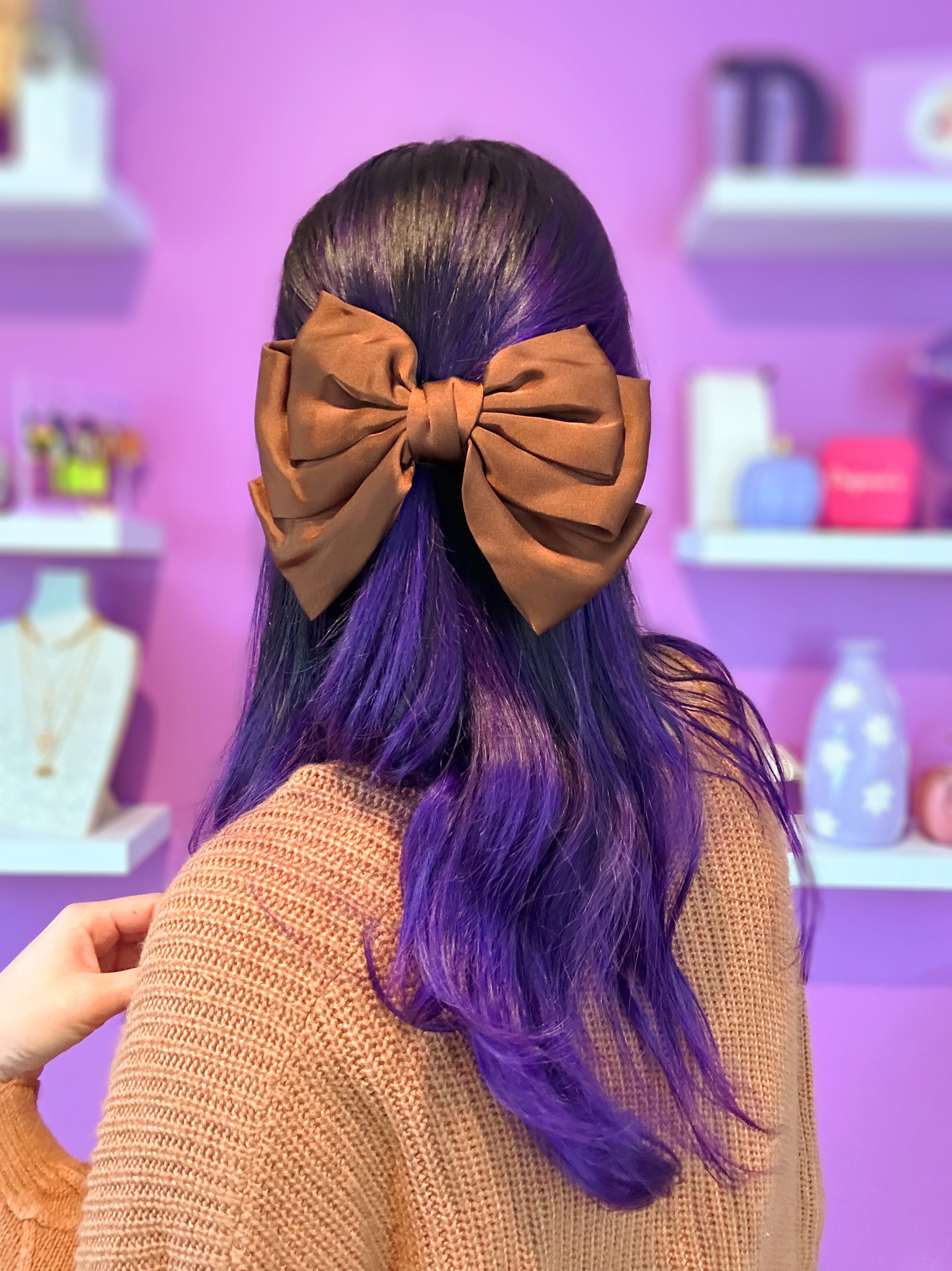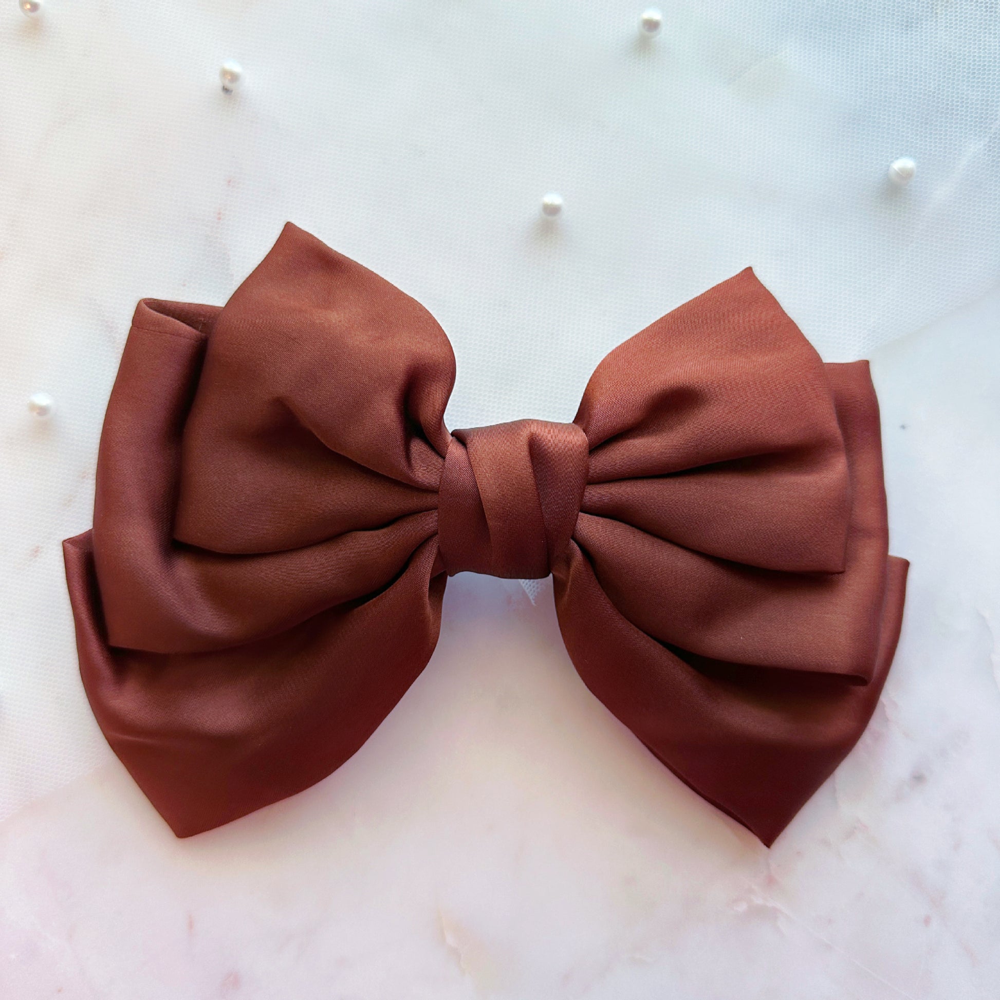 Simple mocha tone fabric handmade double bow knot hair clip.