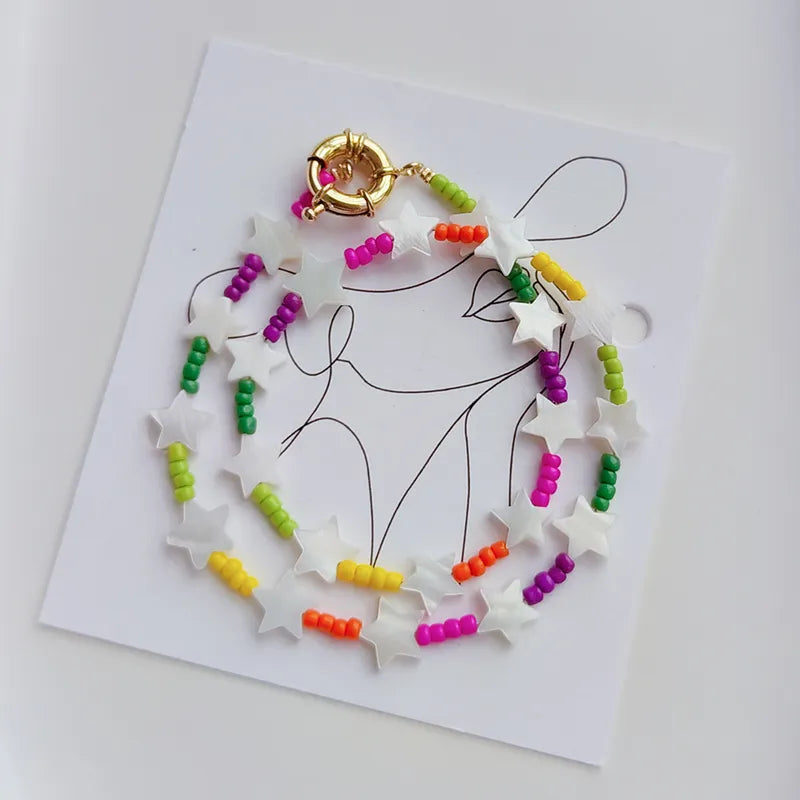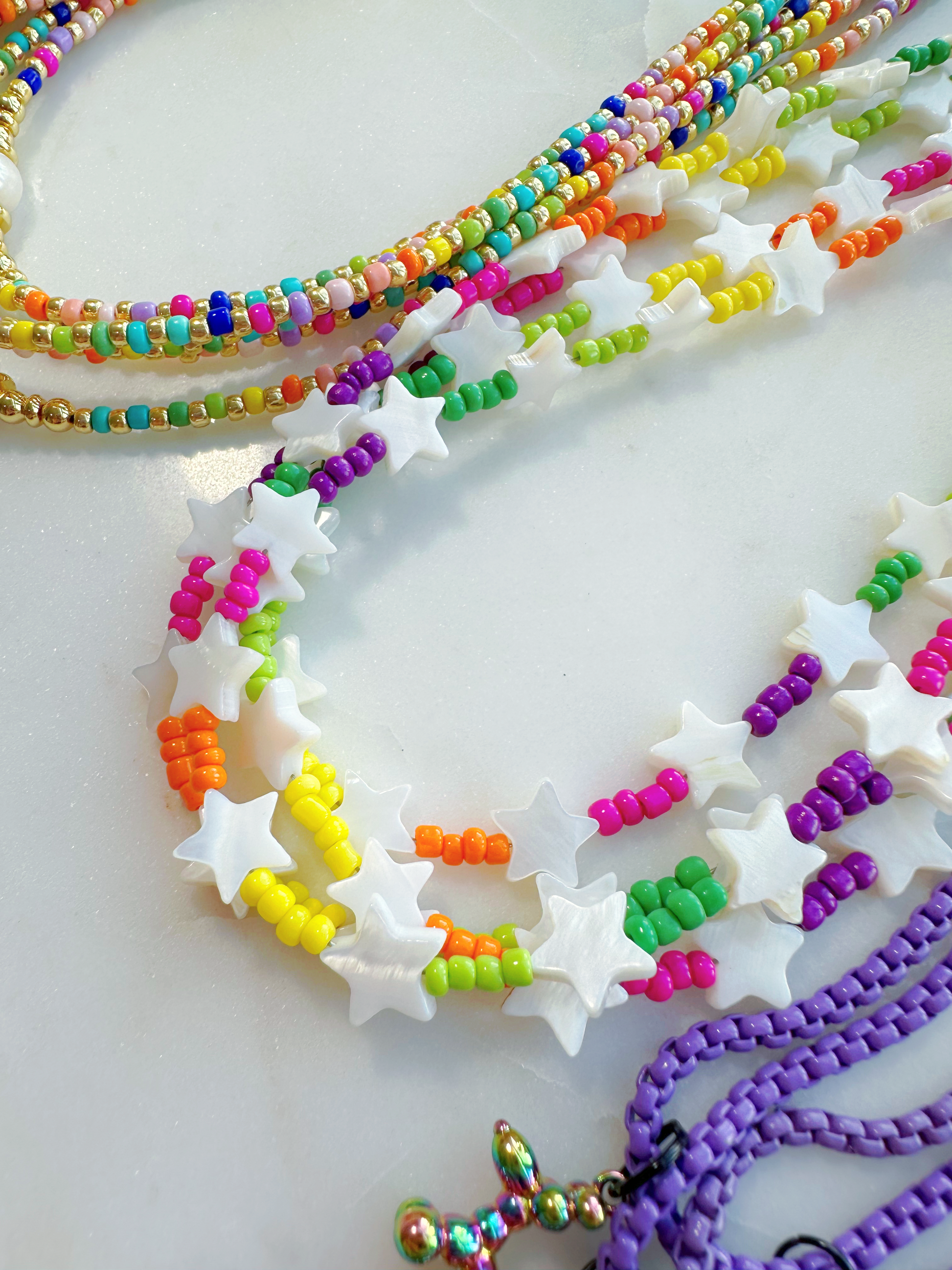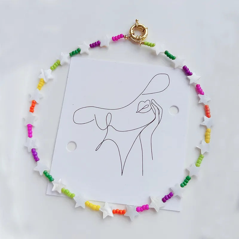 This beautiful necklace/ choker is made with multicolored beads and star beads. Perfect to create a necklace layering.