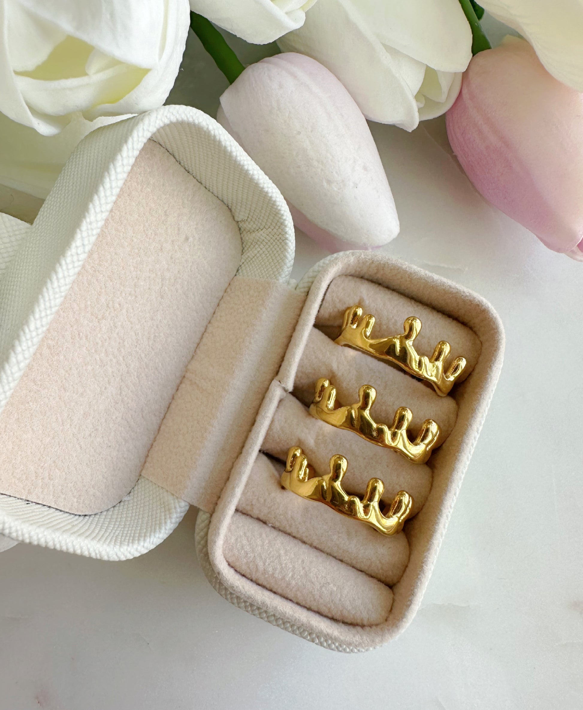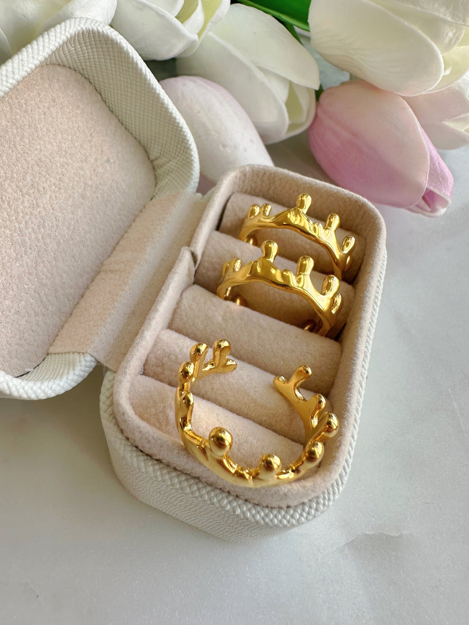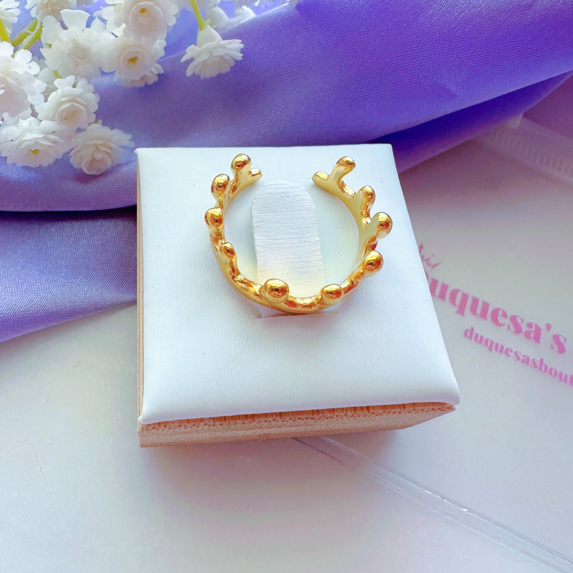 This ring is made from stainless steel and 18k gold plated with adjustable opening for a universal fit.