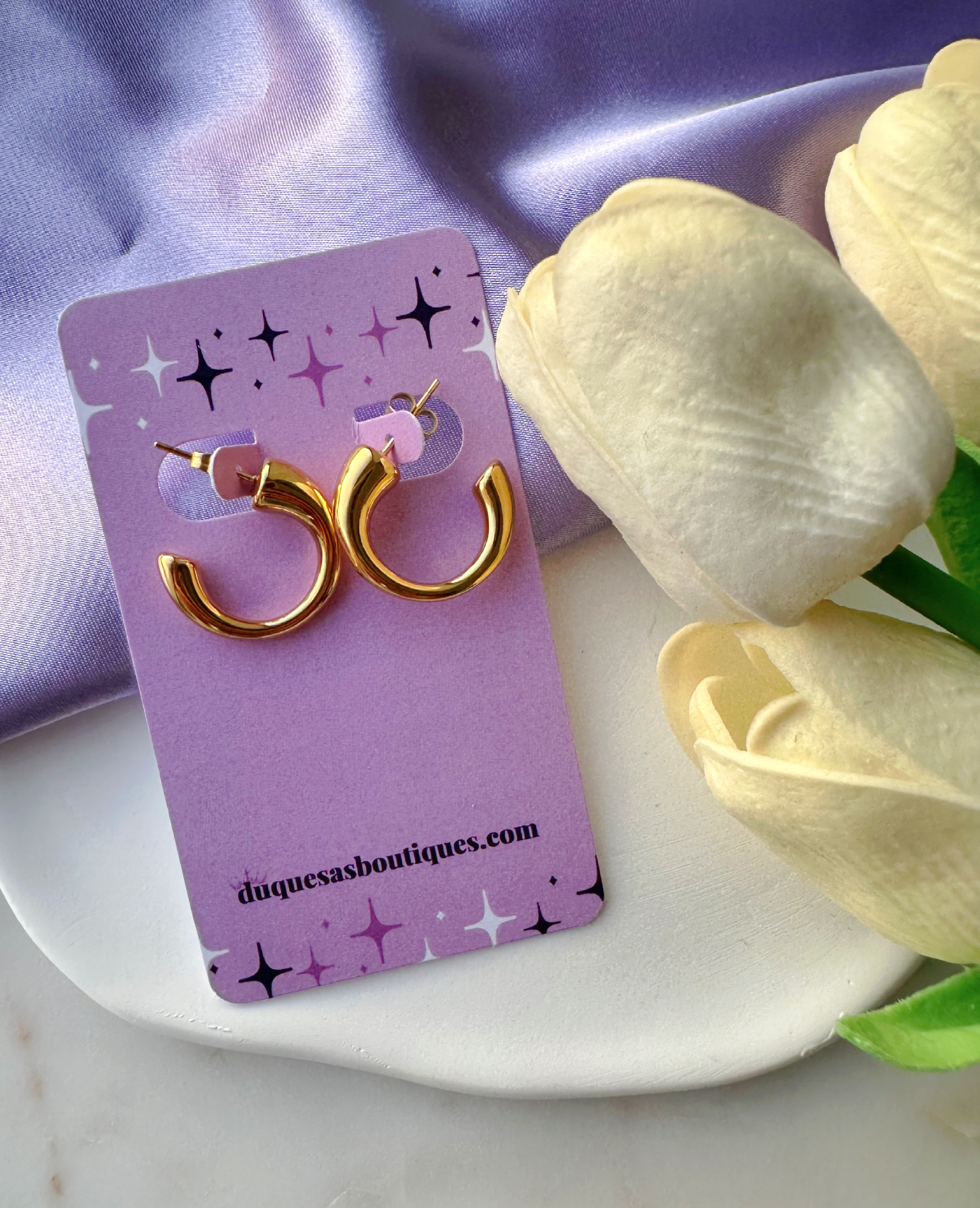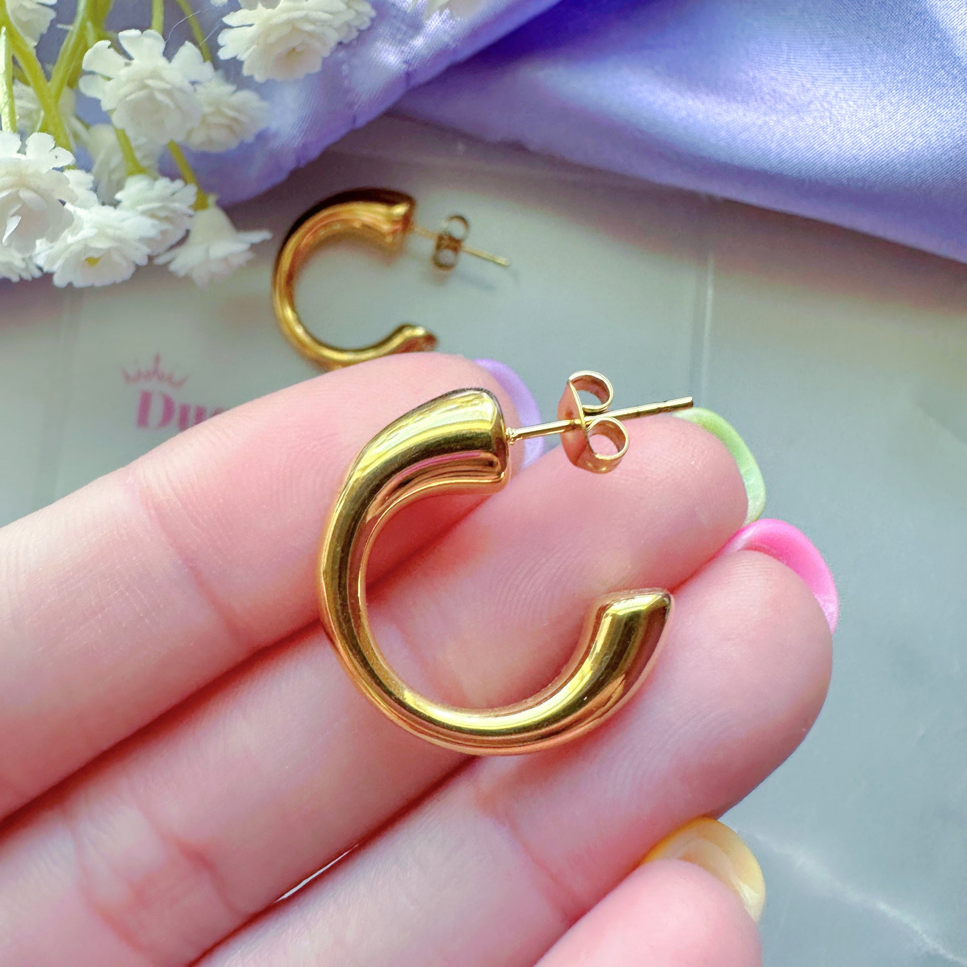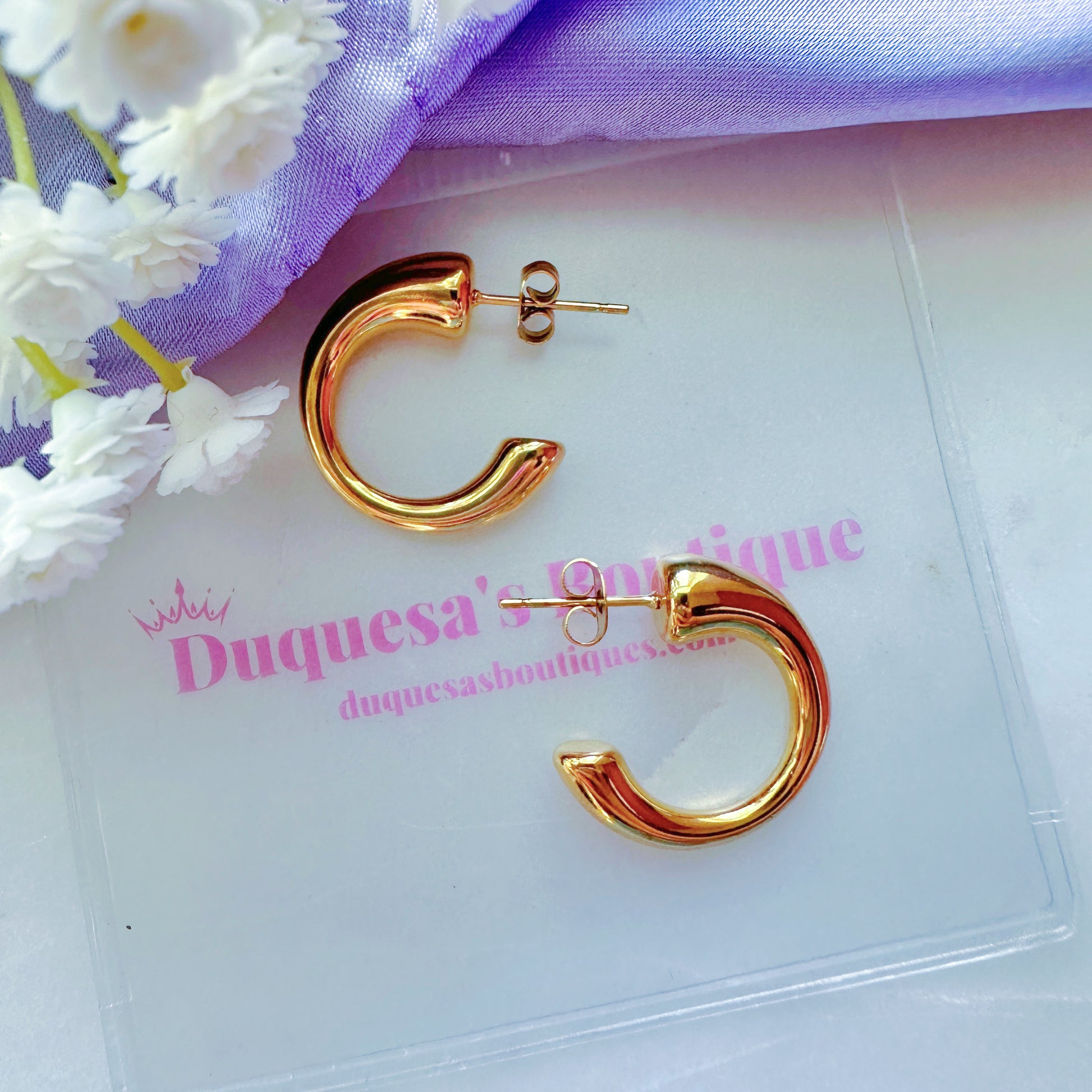 This gorgeous hoop earrings are made from stainless steel and 18k gold plated, they will make you feel and look like a real duchess.