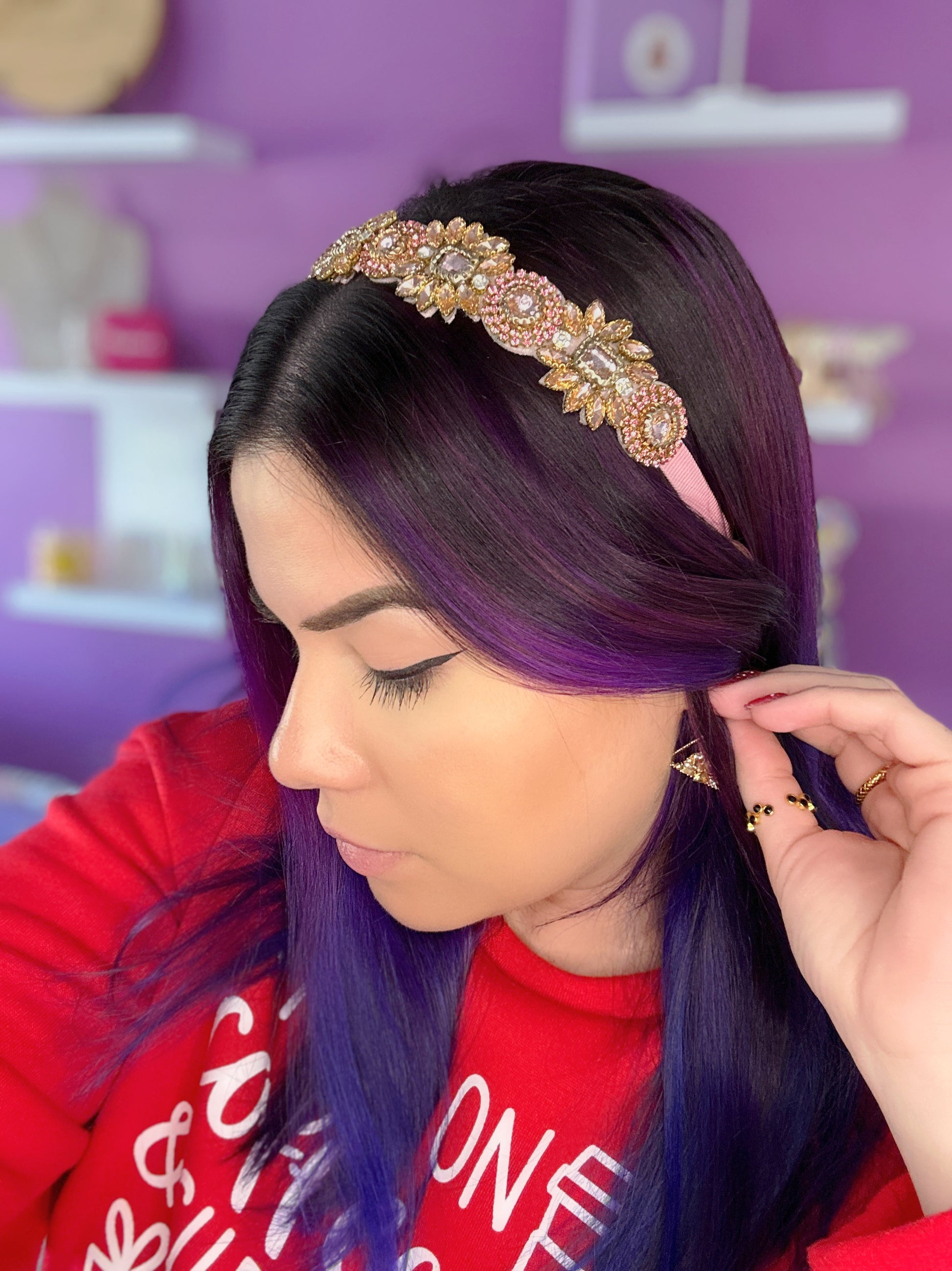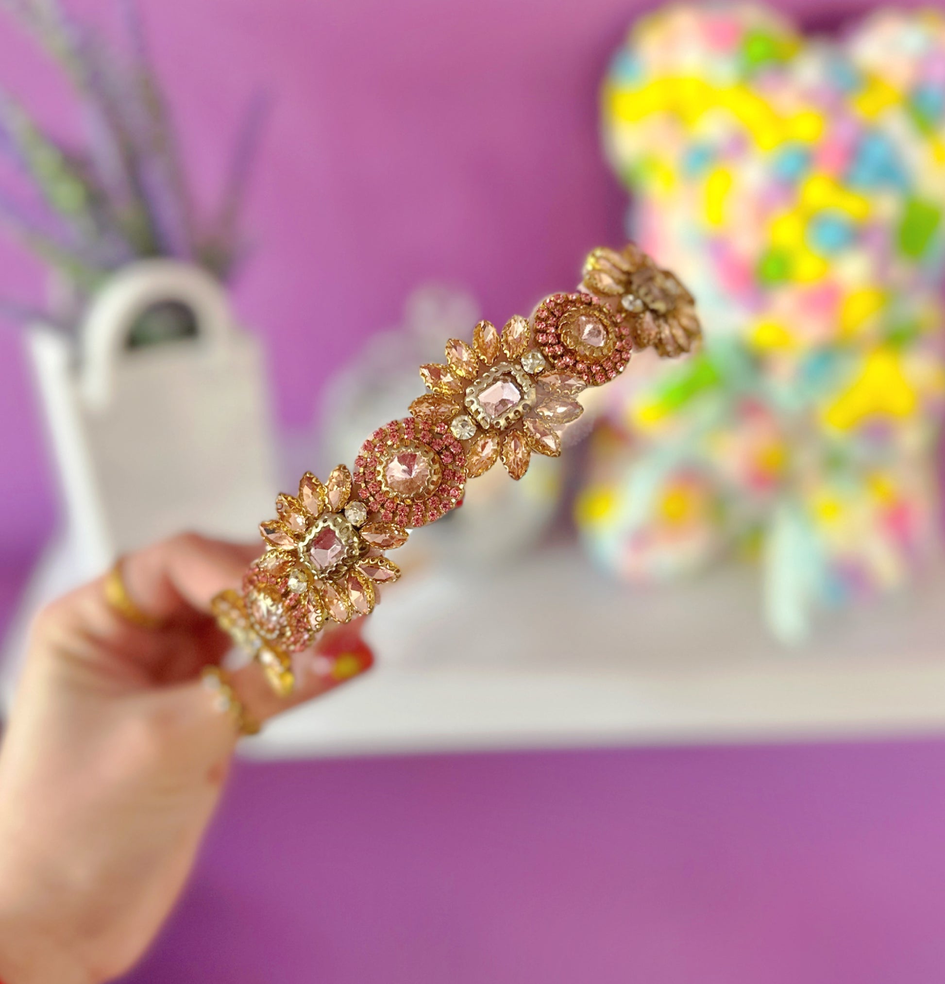 Rose Gold Flowers Beaded Headband