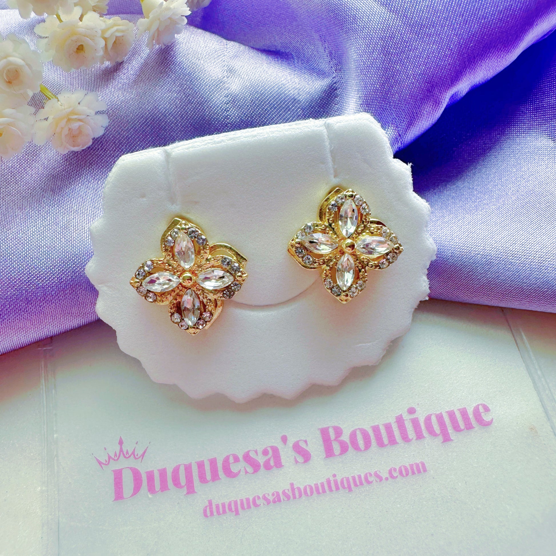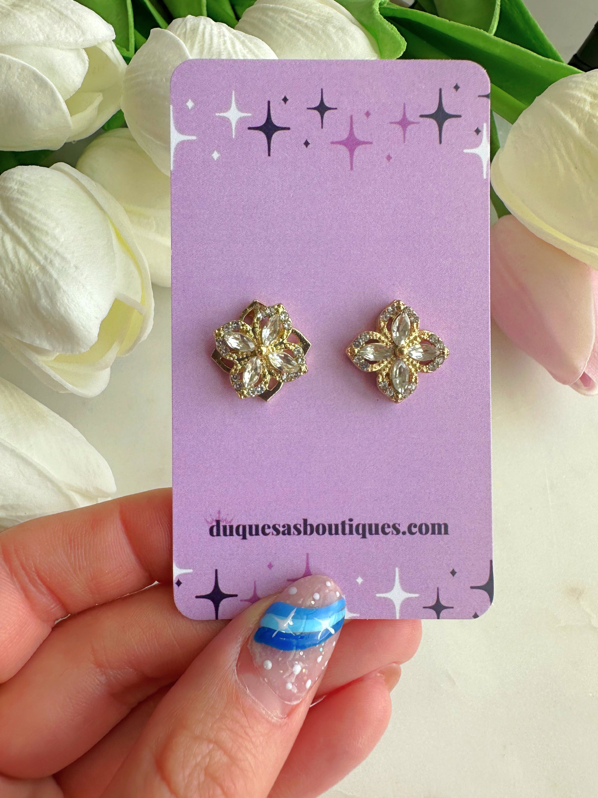 These stud earrings are made from Stainless steel gold plated with an adjustable opening for a better fit. Decorated with clear zircons.