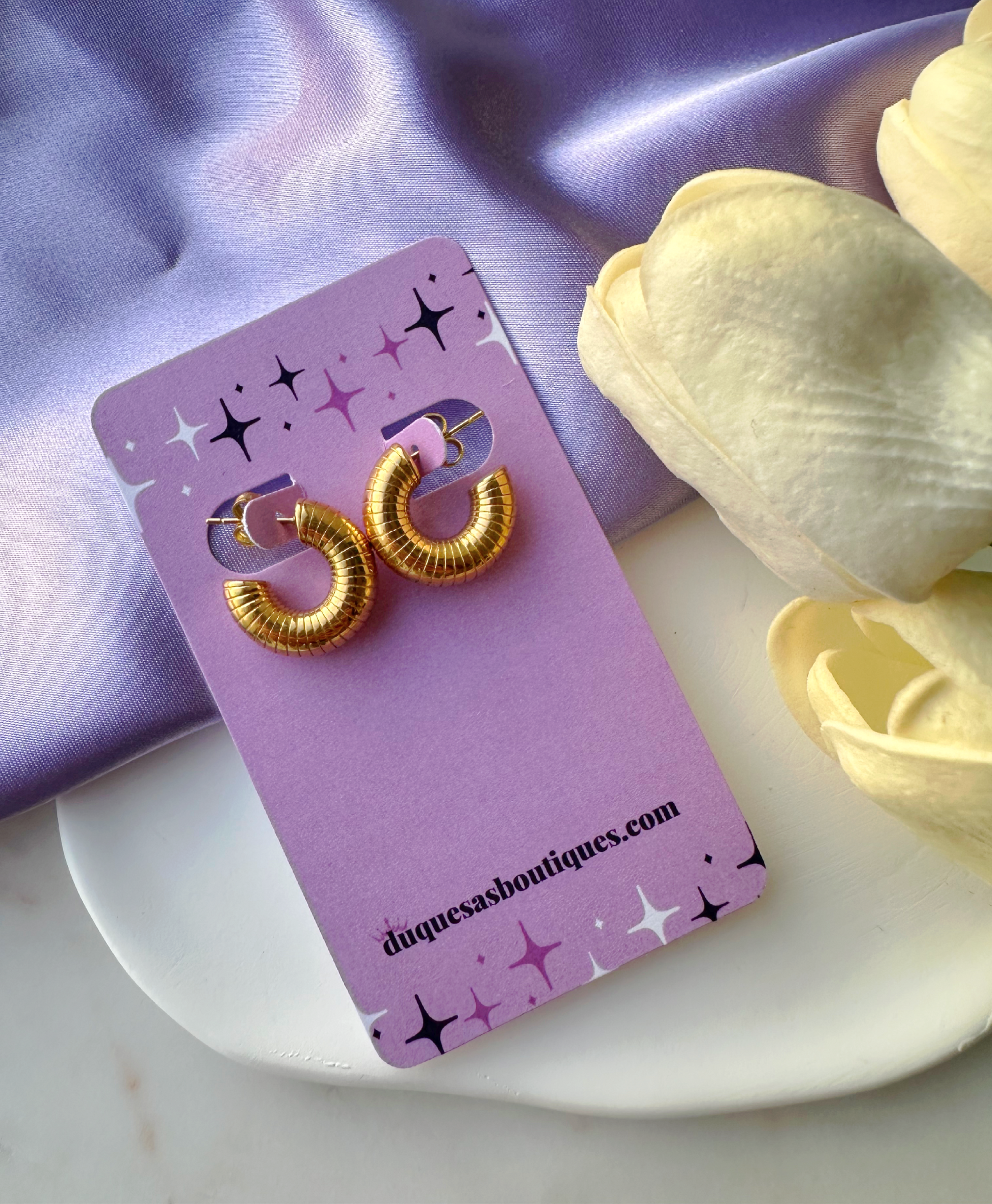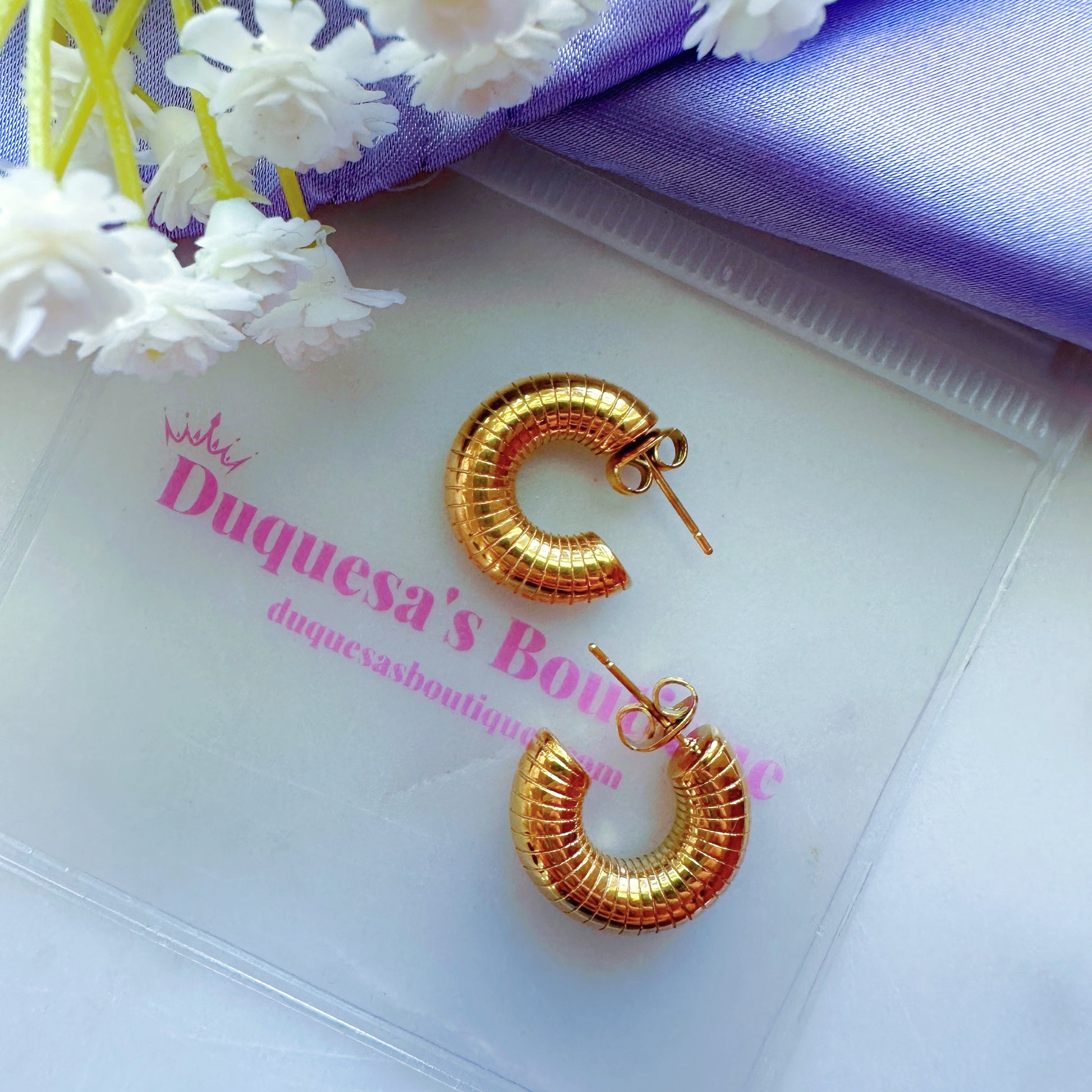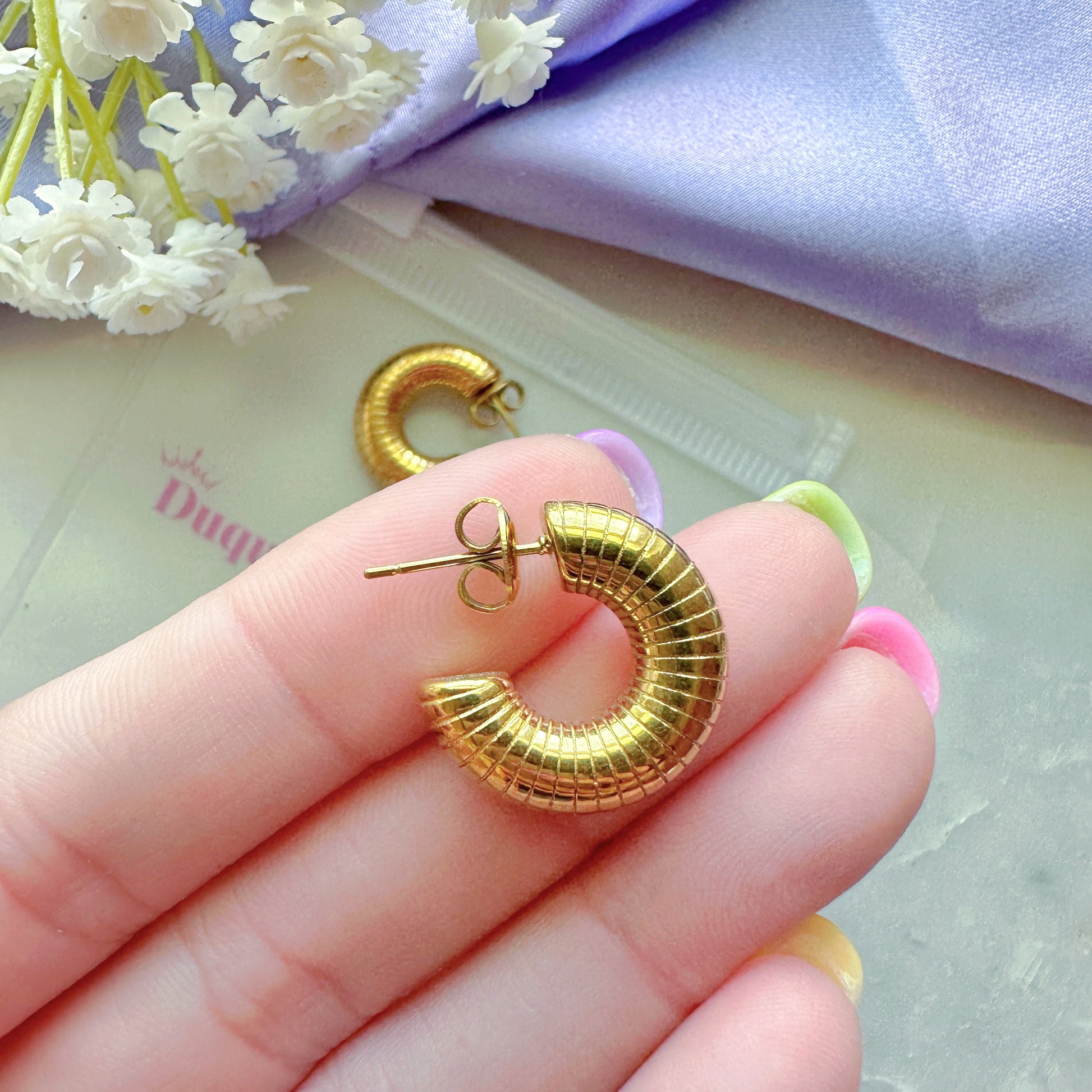 This gorgeous hoop earrings are made from stainless steel and 18k gold plated, they will make you feel and look like a real duchess.