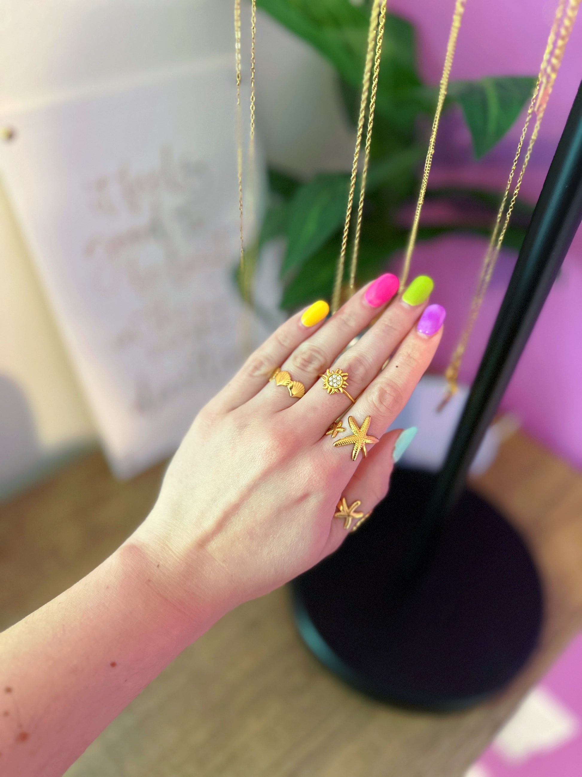 This ring is made from stainless steel and 18k gold plated with adjustable opening for a universal fit.