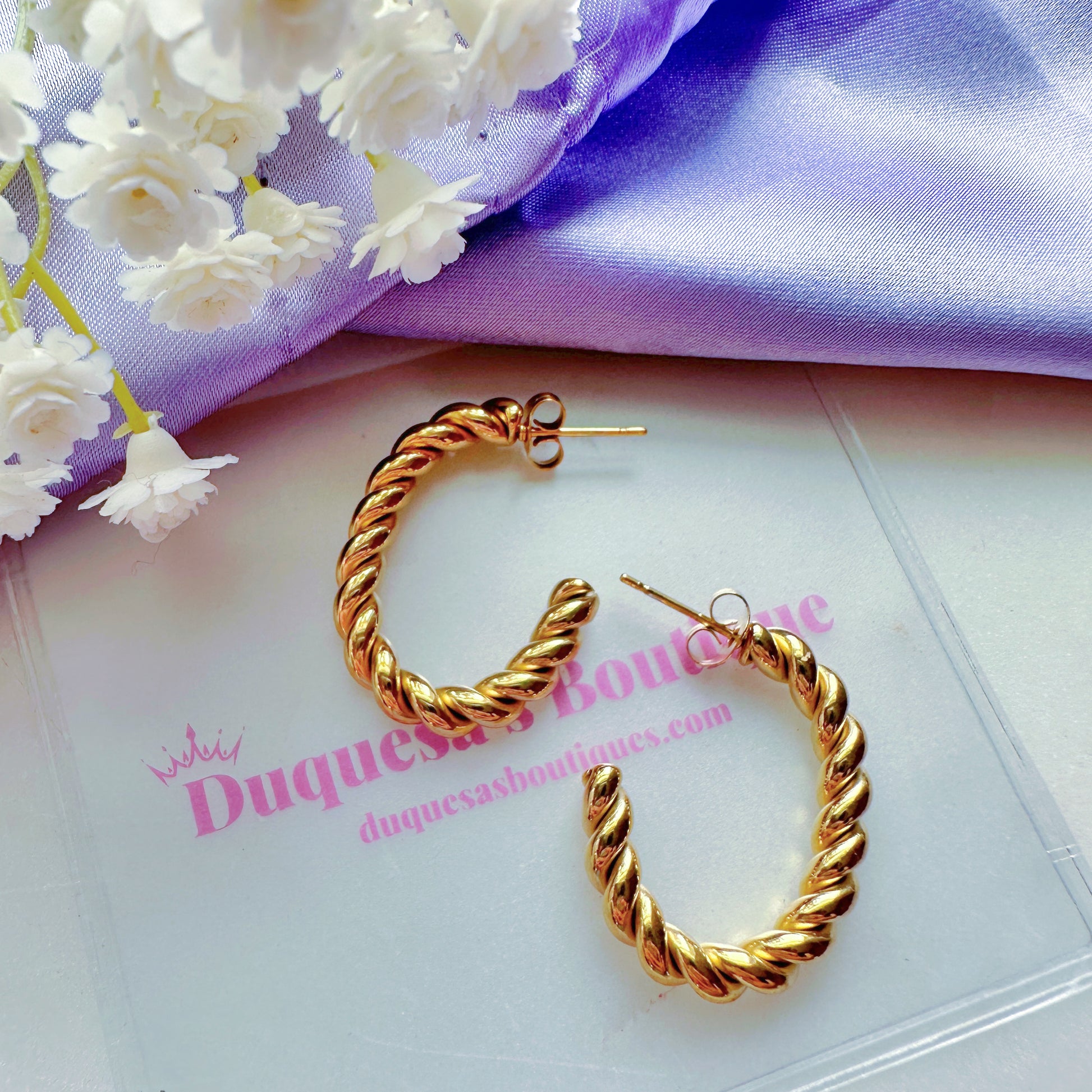 This gorgeous hoop earrings are made from stainless steel and 18k gold plated, they will make you feel and look like a real duchess.