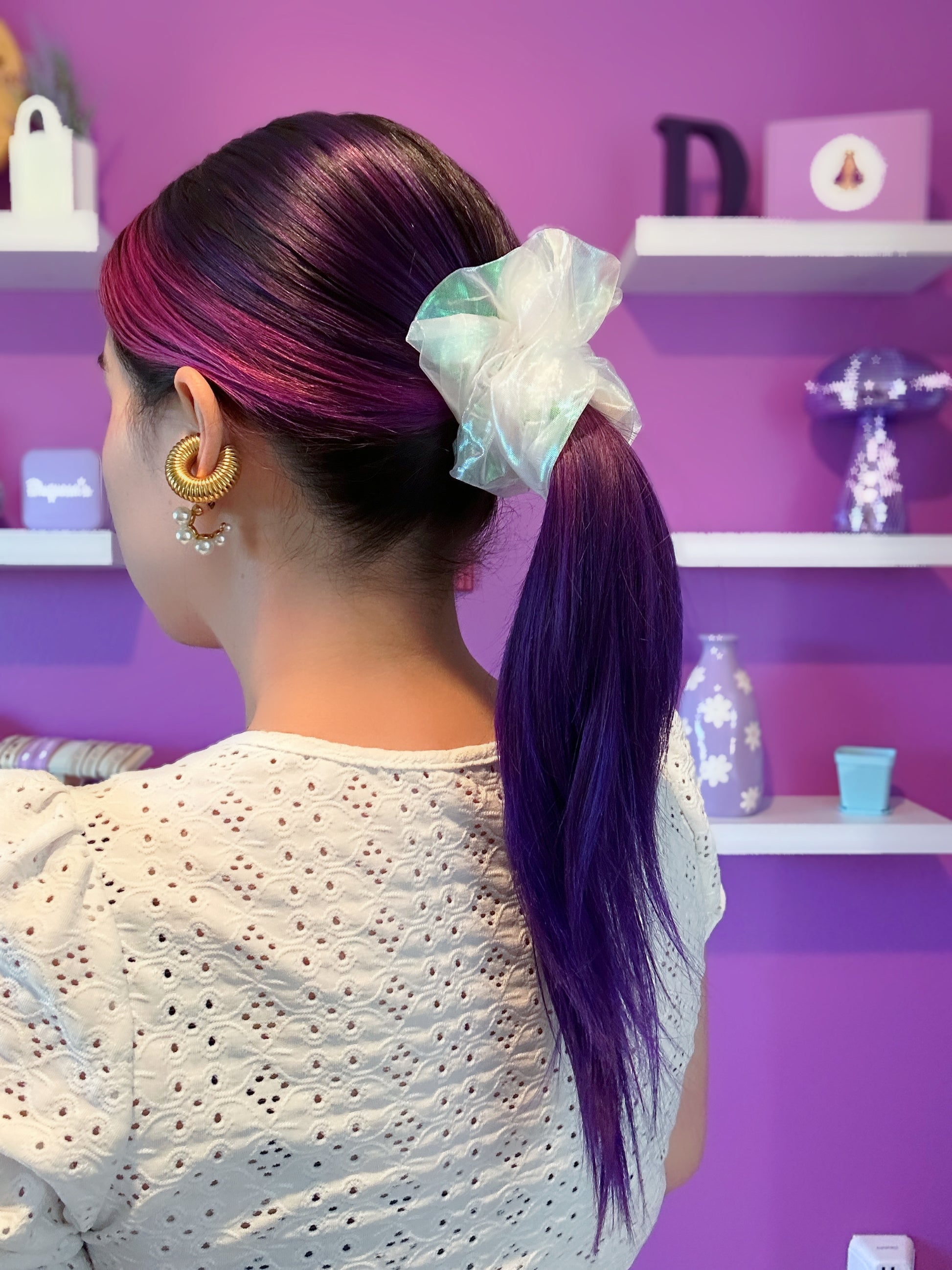 These handmade scrunchies are crafted from luxurious metalic fabric, offering a gentle, secure fit that helps minimize hair damage compared to regular hair ties. Perfect for adding comfort and style to your everyday look!